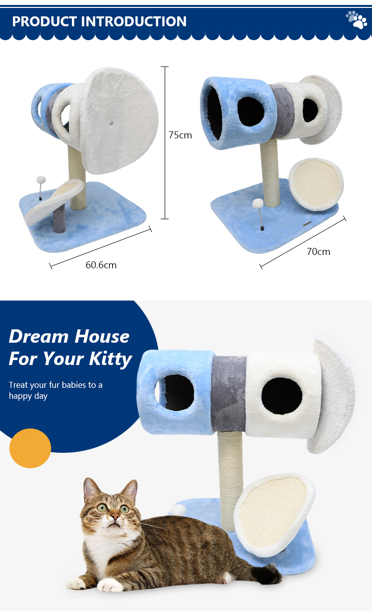 لن يكون هذا الملاذ الساحر والفريد المصنوع من الخشب الصلب مجرد موضع خدش، بل منصة انطلاق مثالية لمغامرات قطتك الفضائية المليئة بالمرح. تخيل قطتك وهي تتسلق المنصات الملفوفة بالسيزال، وتستلقي في الأرجوحة المريحة، وتضرب ألعاب النجوم المتدلية، وتراقب مجالها النجمي من مكان المراقبة المرتفع. إطار تسلق القطط محطة قطط النجوم ليس ممتعًا لقطتك فقط، بل إنه أيضًا بداية لحديث رائع في منزلك بتصميمه الخيالي والسماوي.