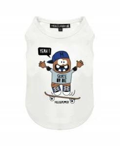 تي شيرت المتزلج: يتميز هذا التي شيرت الأنيق بلون البيج الفاتح (“عاجي”) بتصميم “متزلج” باللون الأسود الغامق والمنشور بالحرير الحريري ، ليخبر الجميع أن كلبك متحمس للتزلج على الألواح (أو على الأقل يبدو أنيقًا وهو يحاول).