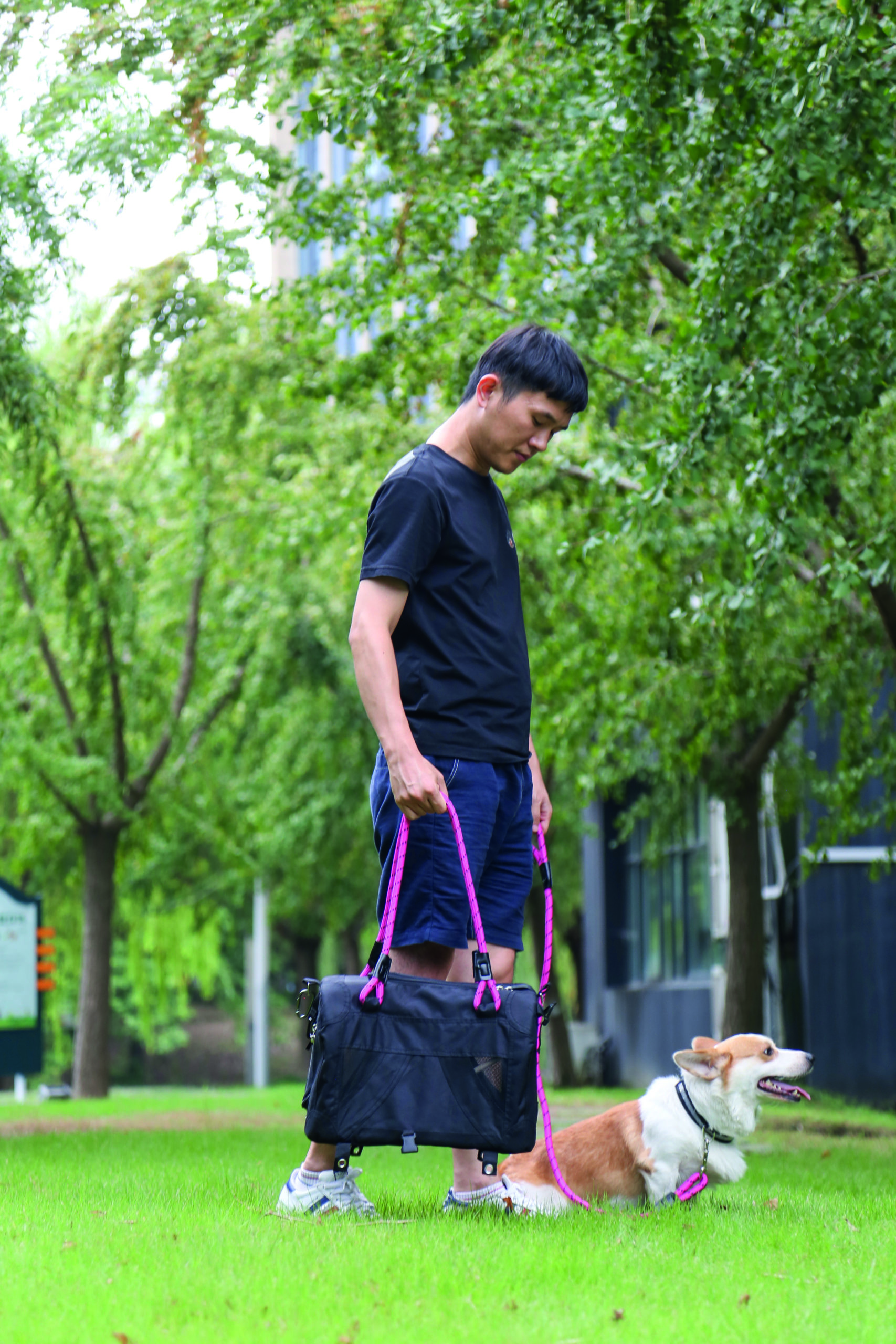 تعمل هذه الحقيبة كلاً من حقيبة حمل مريحة وحزام حر اليدين لمشي حيوانك الأليف. يتحول حزام الكتف القابل للفصل بسهولة من حزام حمل إلى مقود ، مما يوفر المزيد من التنوع أثناء نزهاتك.