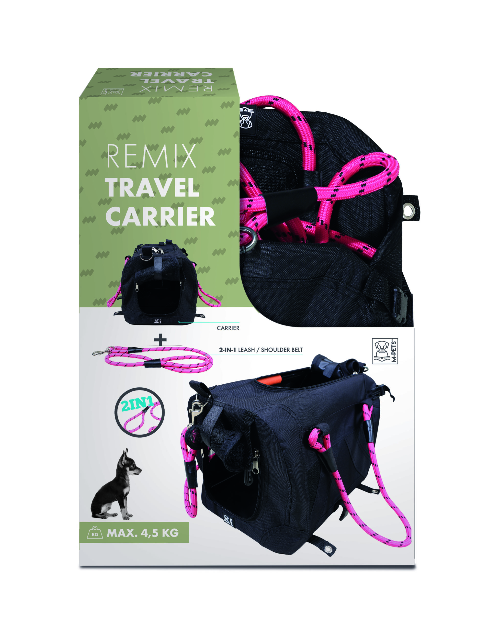 حقيبة السفر ريمكس 2 في 1 مع – أسود ووردي: تجمع حقيبة الحمل متعددة الاستخدامات هذه بين الراحة والوظيفة ، مما يجعلها الخيار الأمثل للرحلات القصيرة أو زيارات الطبيب البيطري أو المغامرات اليومية مع حيوانك الأليف الصغير.