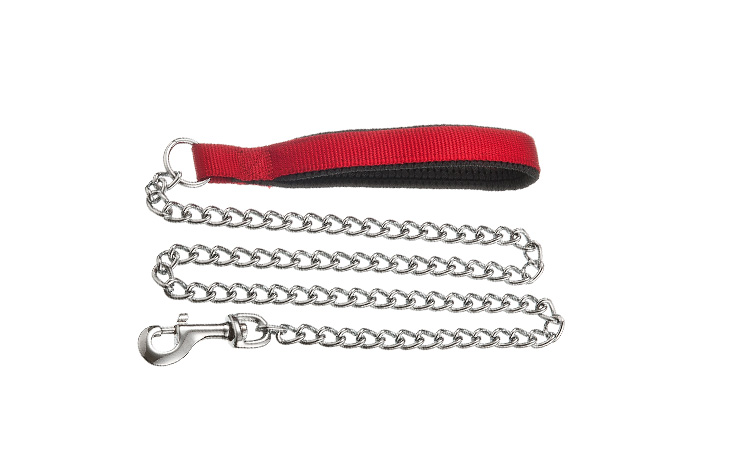 Chic, durable, and comfy chain leash. A shiny steel design with a cozy neoprene grip.