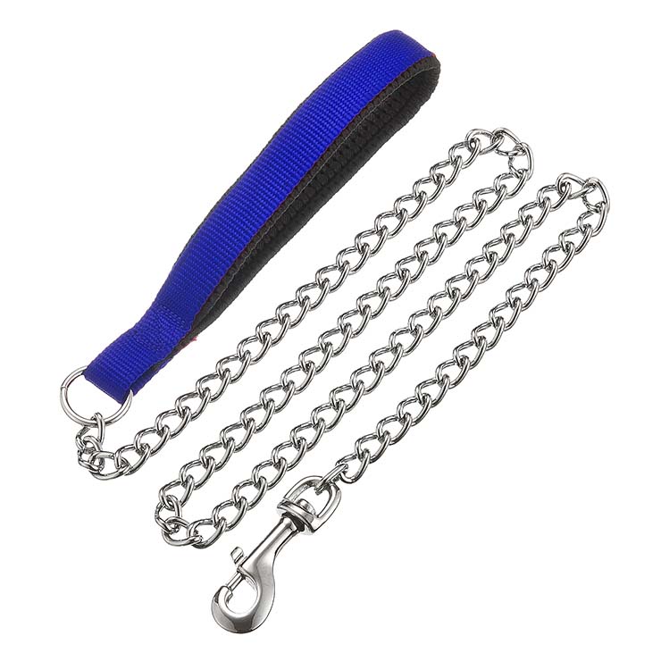 Chic, durable, and comfy chain leash. A shiny steel design with a cozy neoprene grip.
