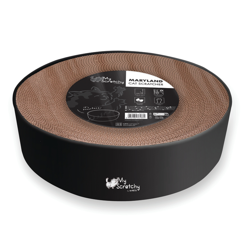 ndulge your cat with the new corrugated cardboard scratchers by M-PETS®. Our scratchers feature vibrant patterns and an ergonomic, round shape that provides ample space for your cat to stretch out and relax. The sturdy corrugated cardboard construction is perfect for satisfying your cat’s natural scratching instincts, while the cozy texture makes it an inviting spot for your cat to curl up and nap.