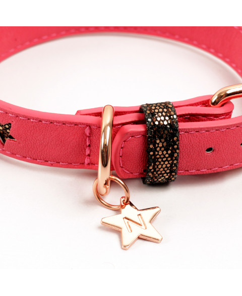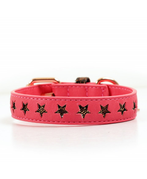 Drilled Collar in imitation grained leather letting appear pink stars glitters