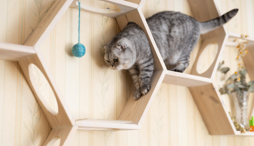 Cats have an instinct to climb, jump, and perch up high, where they feel safe and in control of their surroundings. Without adequate vertical space, cats can become bored or stressed, leading to unwanted behaviors like scratching furniture or excessive meowing. A cat wall helps: